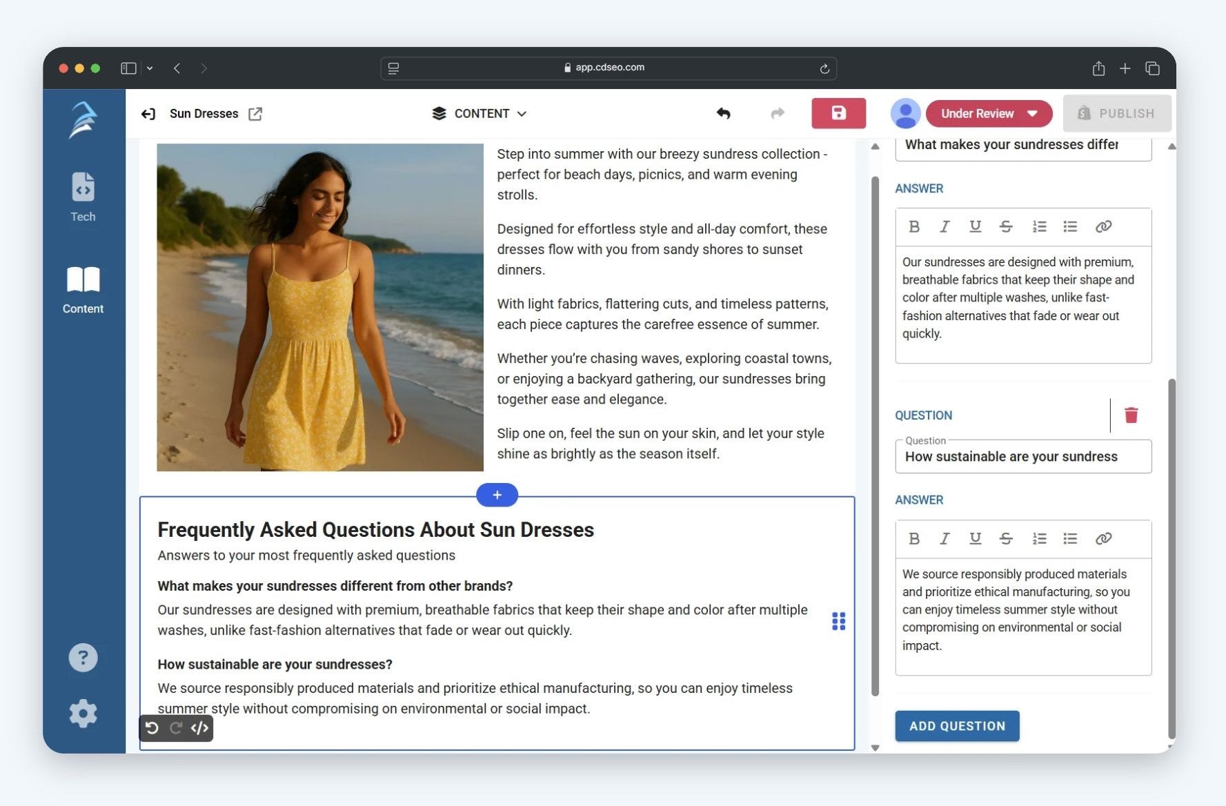 Assign tasks, set deadlines, create content, review, and publish to Shopify - all within CDSEO. Coordinate effortlessly across team members to streamline content creation.